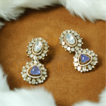 Real Polki diamond earrings in 22K (916) gold, adorned with Polki diamonds and tanzanite accents. Length: 2