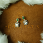 Traditional Real Polki diamond earrings crafted in 18K (75%) gold with emerald highlights. Length: 1
