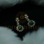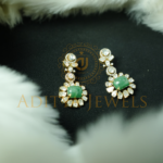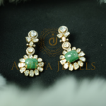 Traditional Real Polki diamond earrings crafted in 22K (916) gold with emerald highlights. Length: 2