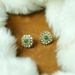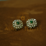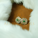 Real Polki diamond earrings in 18K (75%) gold, adorned with Polki diamonds and emerald accents. Length: 1