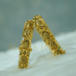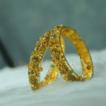 Traditional Nakshi Temple-style bangle crafted in 22K (916) gold with CZ, ruby, and emerald work. Size: 2.6