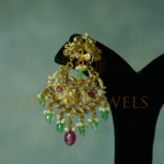 Elegant 22K (916) Junagadh-style Chandbali featuring CZ, ruby, pearls, and bead detailing. Size: 2.5