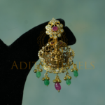 Traditional Temple-style earrings crafted in 22K (916) gold with CZ sparkle, ruby accents, and beads. Size: 2