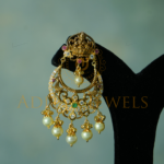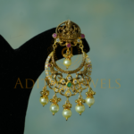 Traditional Pachi Chandbali crafted in 22K (916) gold, highlighted with CZ, ruby, emerald, and pearl work. Length: 1.5