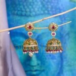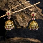 Crafted in 916 (22kt) gold, these earrings are embellished with CZ, ruby (RU), emerald (EM), pearls (Prl), and beads.