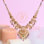 Crafted in 916 (22kt) gold, this 9-inch short necklace features CZ, ruby (RU), emerald (EM), and bead accents.