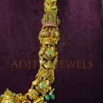 Temple Long Haram in 22K (916) gold, adorned with ruby, emerald, and pearl accents. Length: 16