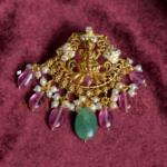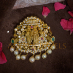 A versatile 20-inch Pachi long haram in 22K (916) gold, embellished with CZ, ruby, and emerald stones for a grand and regal look.