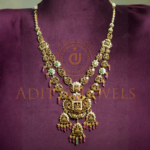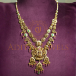 Beautifully designed 22K (916) Pachi Long Haram featuring CZ stones, ruby, emerald, and pearls for a rich ethnic look. Size: 16