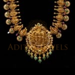 This 18-inch long necklace is crafted from 916 (22kt) gold and beautifully adorned with CZ, ruby (RU), emerald (EM), and beads.