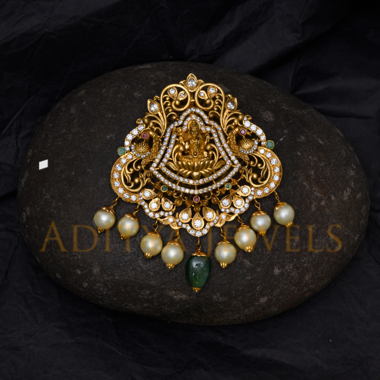 This stunning 2.5″ pendant is crafted in 22kt (916) gold, beautifully adorned with CZ, ruby, emerald, and pearl accents for a refined and classic look.